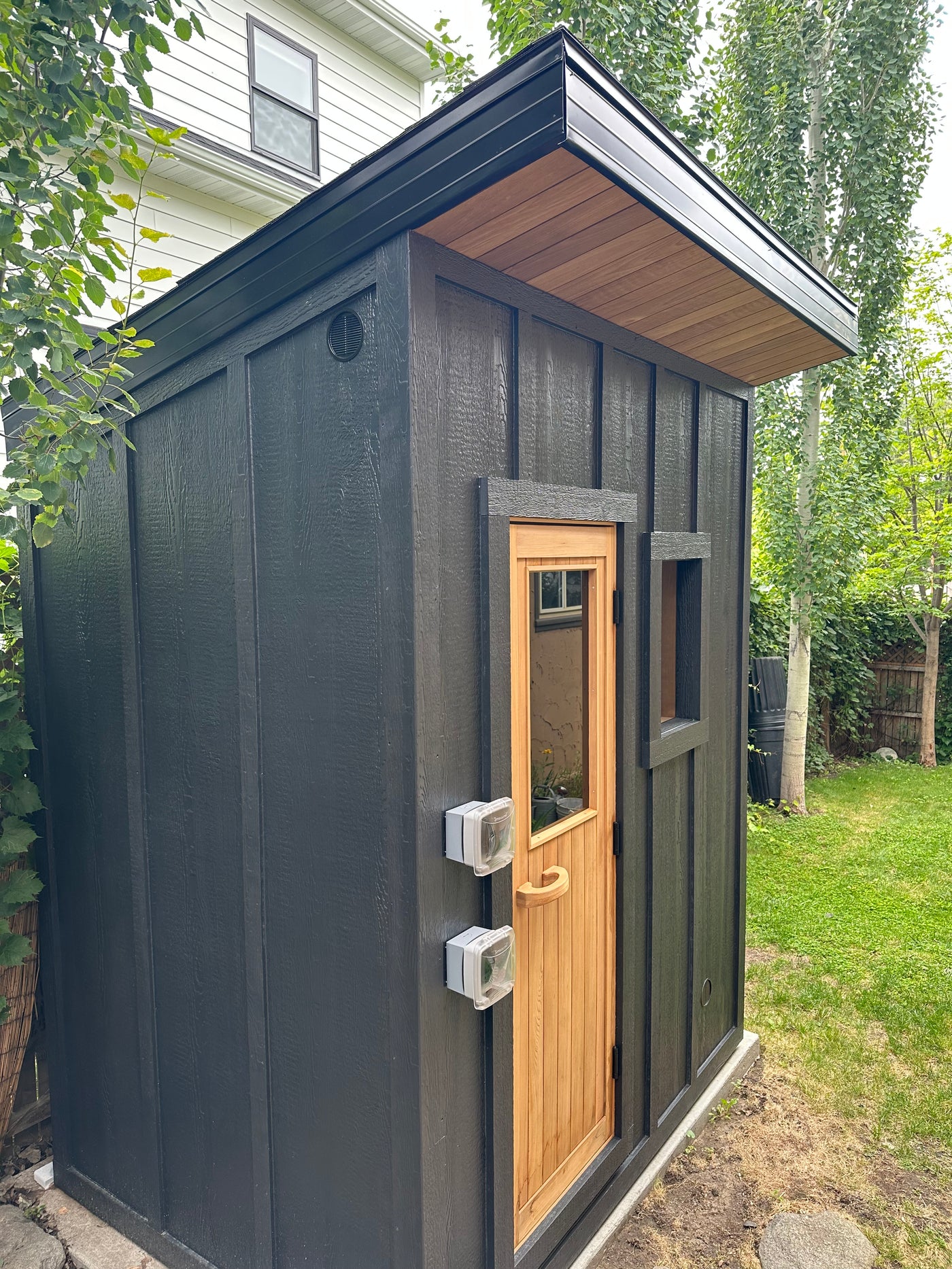 The exterior of the Luminary sauna is crafted to withstand all 4 seasons of weather. The combination of LP SmartSide and heat-modified woods makes this an incredibly durable and weather-resistant product.