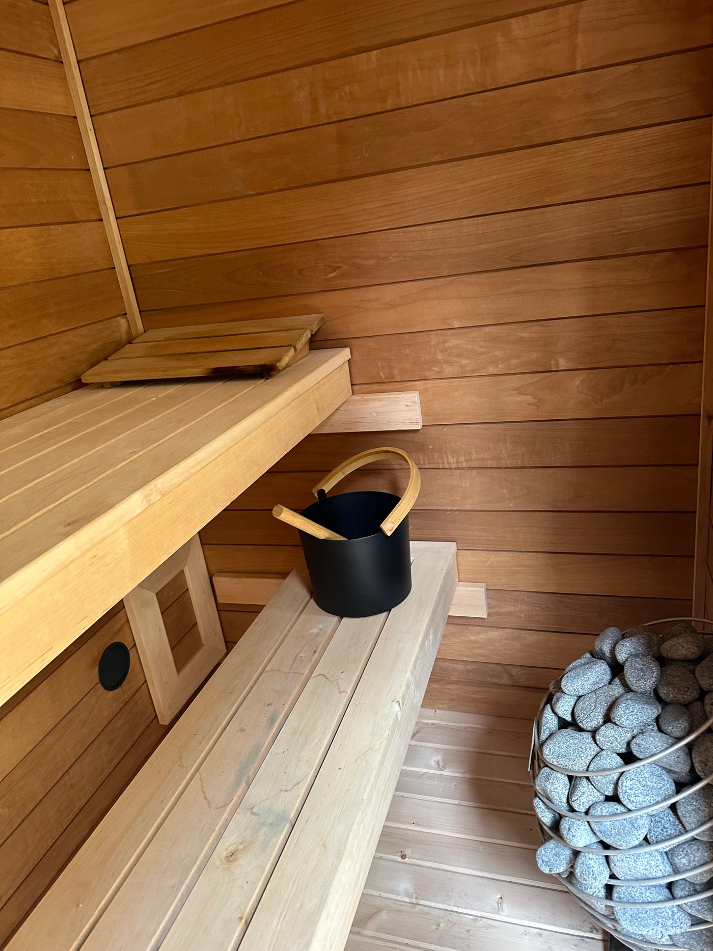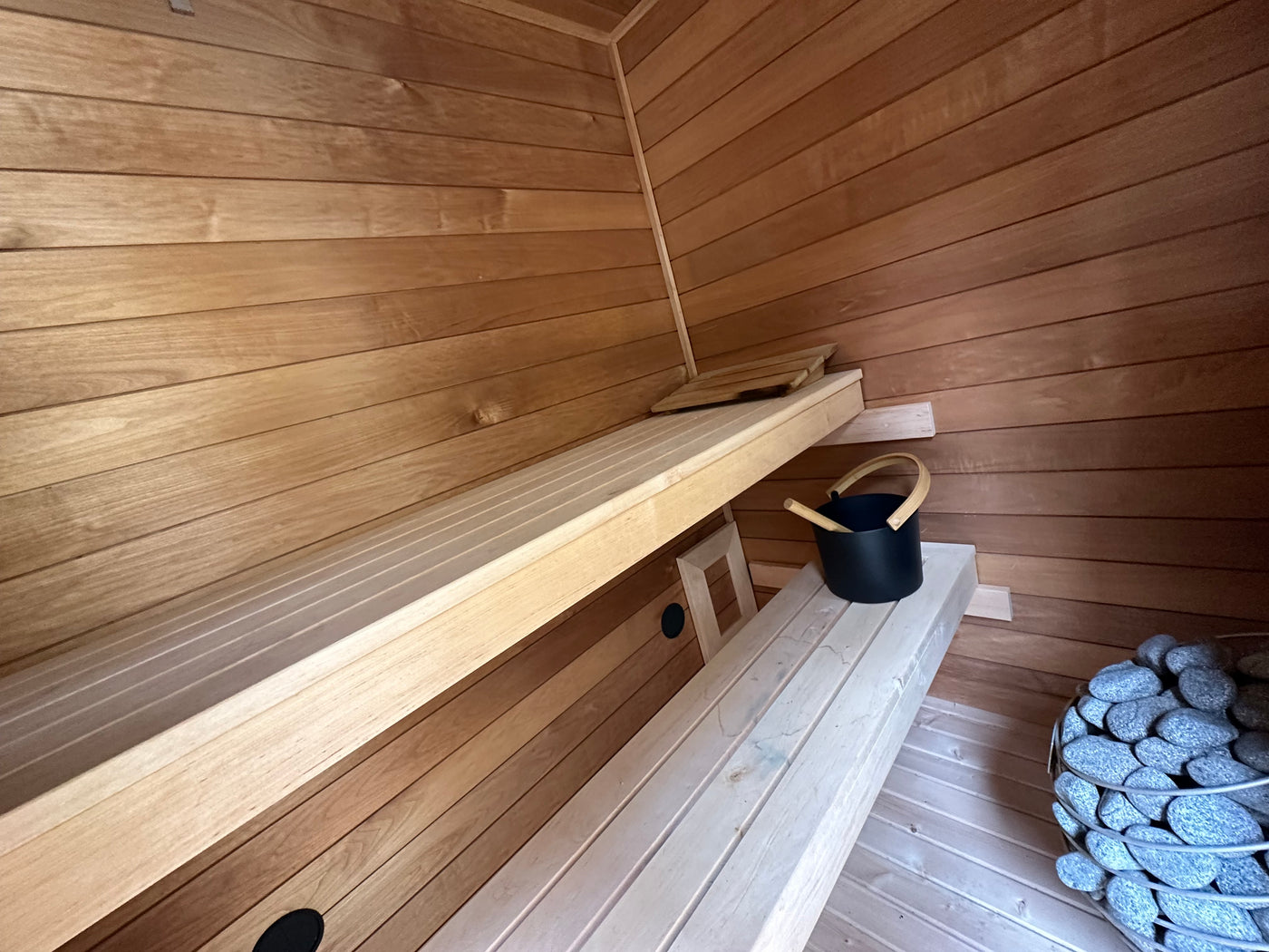 The Luminary sauna features a lower and upper bench for maximum use of heat & comfort