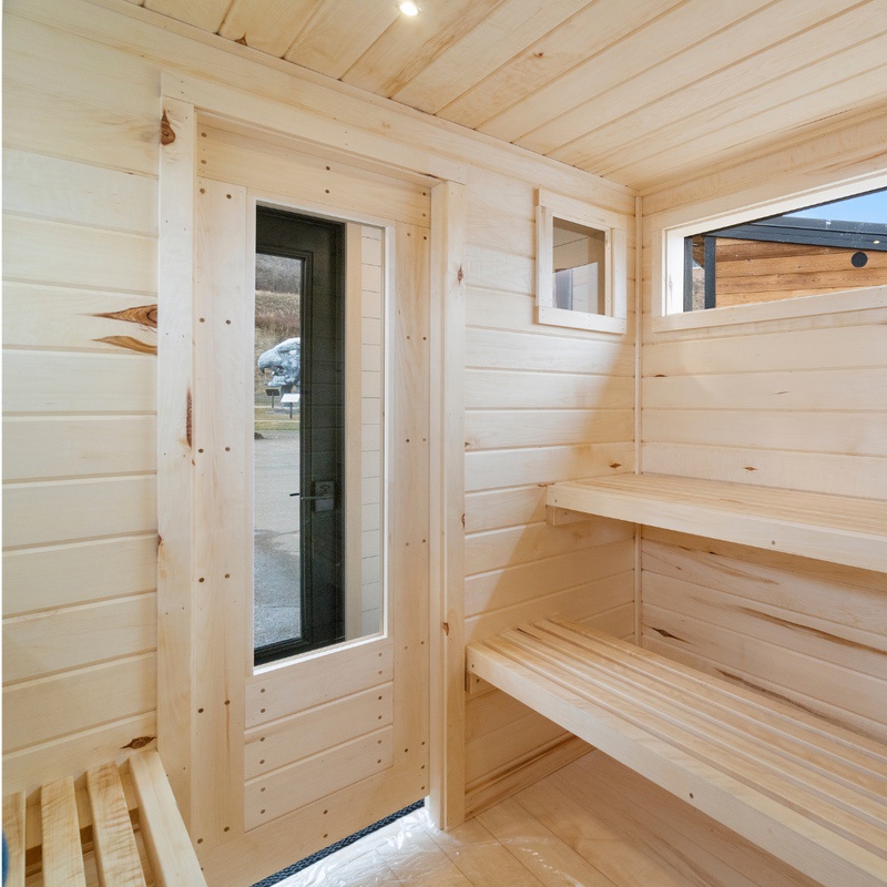 The exterior of each sauna is crafted to withstand the elements, featuring LP SmartSide and heat-modified wood siding. This combination of materials makes for a durable and weather-resistant product that can stand up to even the toughest of weather conditions.