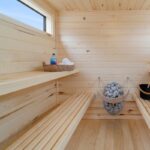 The Porter sauna features 2 rows of lower and upper benches for maximum use of heat & comfort